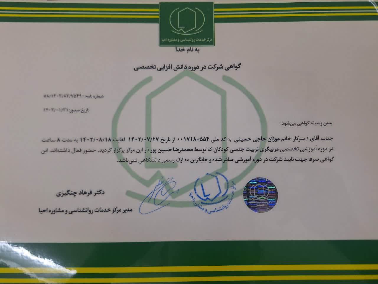 • متخصص تربیت جنسی کودک و نوجوان