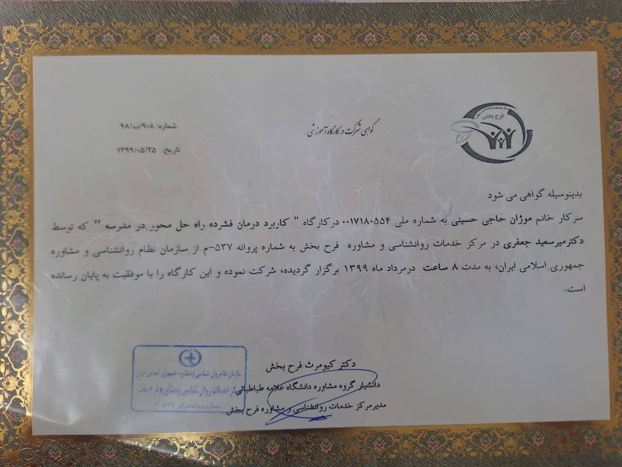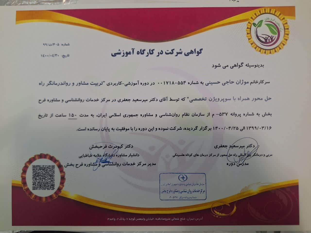 • سوپرویژن تخصصی مشاوره و روان درمانگر راه حل محور | مرکز مشاوره فرح بخش