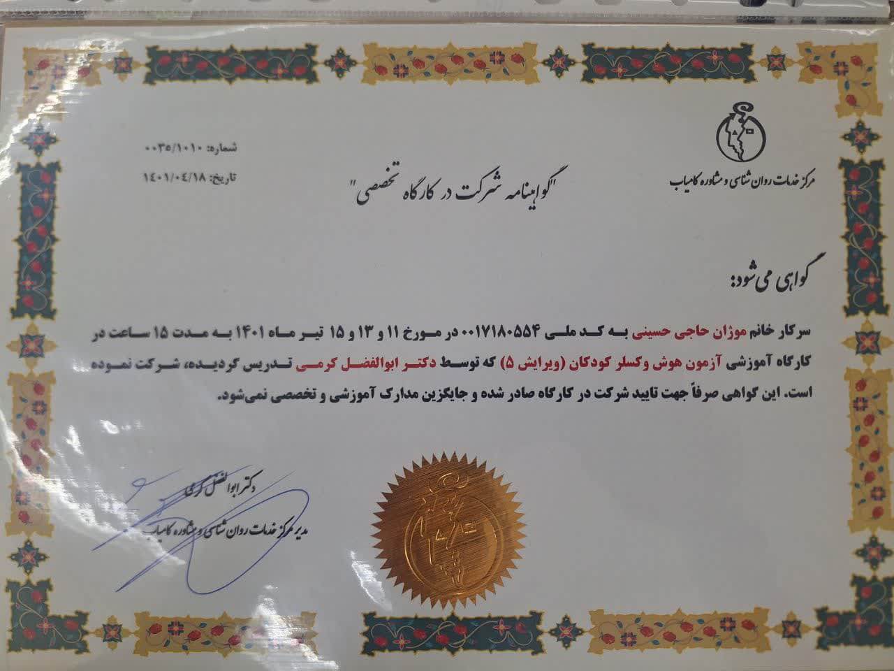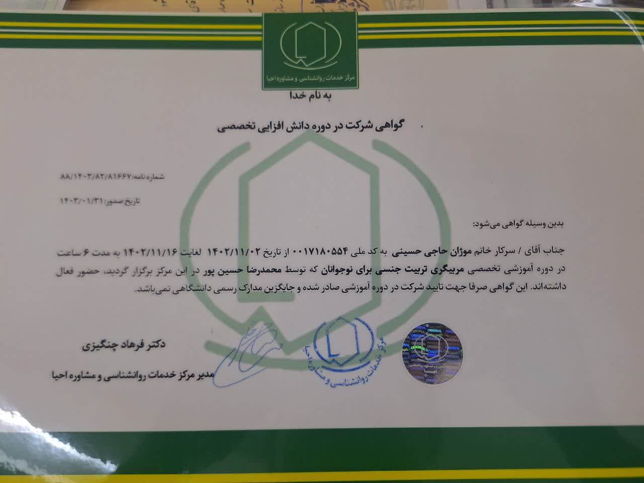 • پروانه اشتغال تخصصی | سازمان نظام روان شناسی و مشاوره جمهوری اسلامی ایران