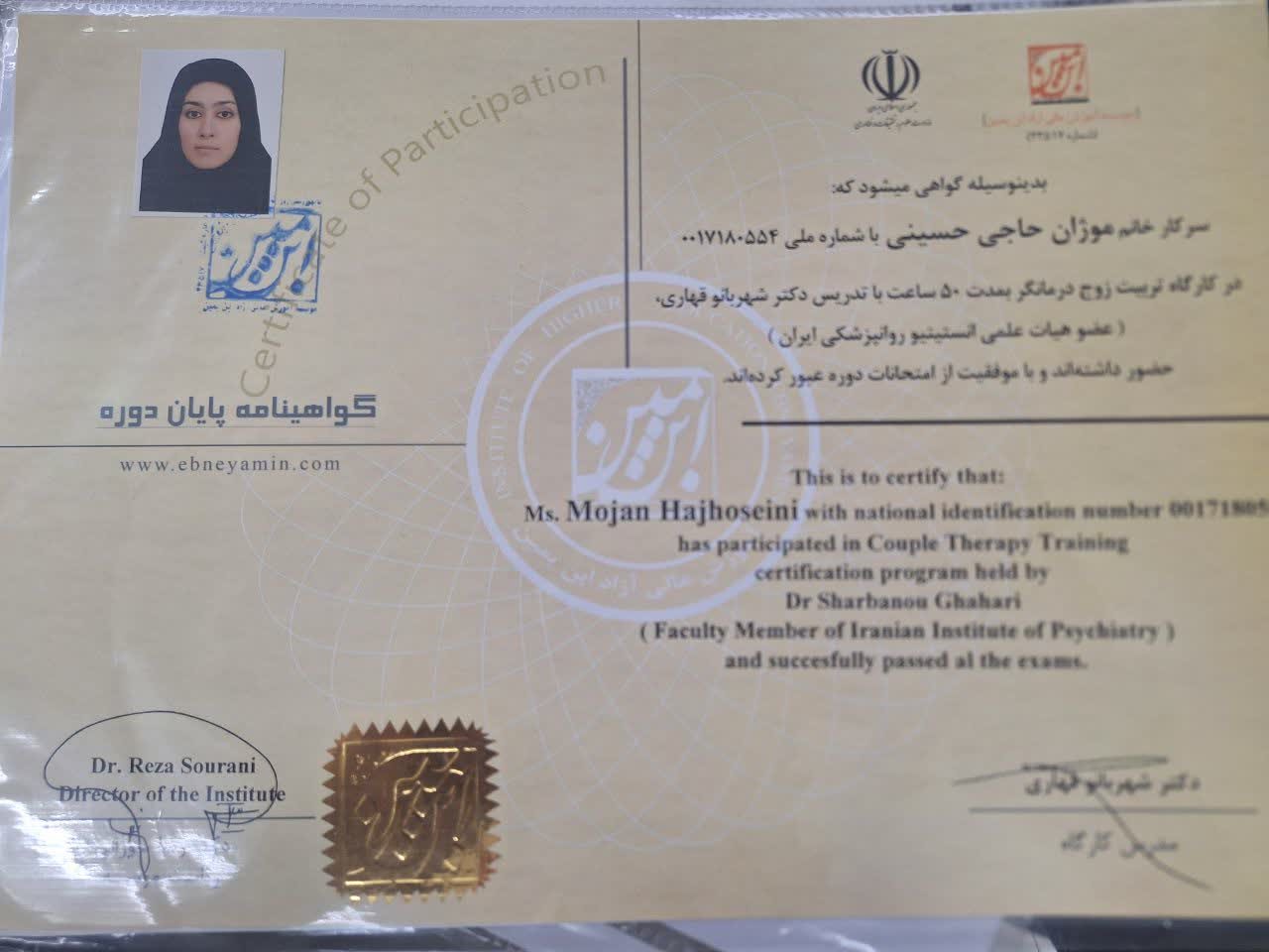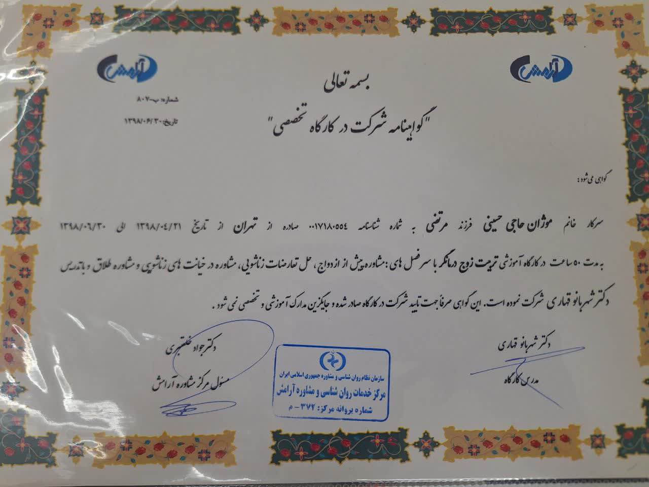 • دکترای تخصصی مشاوره – دانشگاه تهران